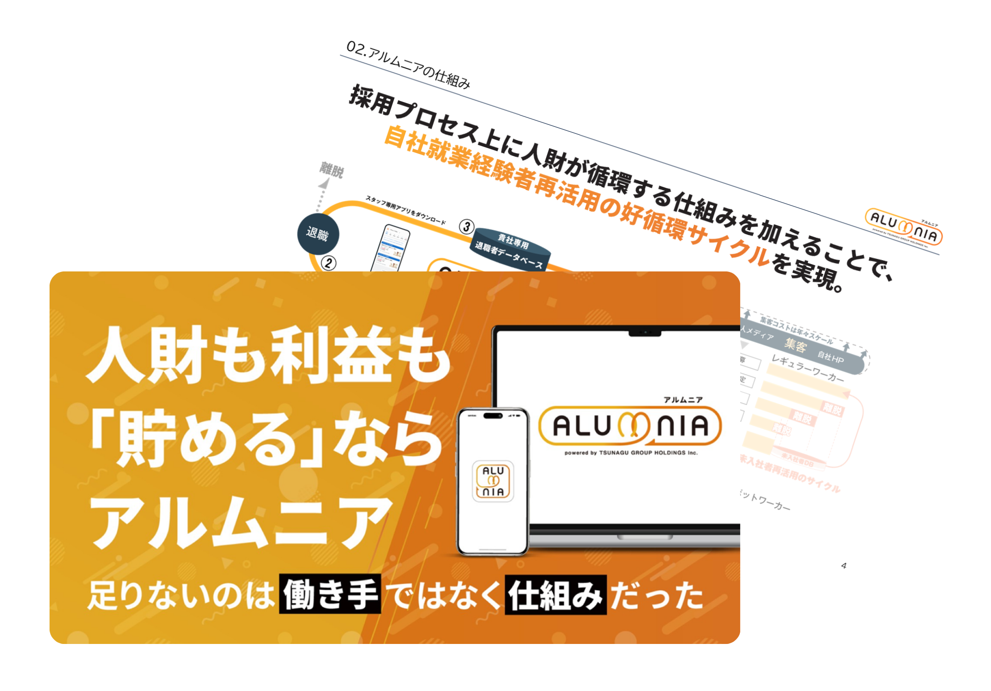 「アルムニア」は、元アルバイトや元社員を呼び戻して再雇用できる、バイト特化型のアルムナイサービスです。過去に自社で働いた経験がある人材をデータベースで管理し、再度お仕事を案内することで、即戦力の確保・採用コスト削減・教育負担の軽減を実現します。